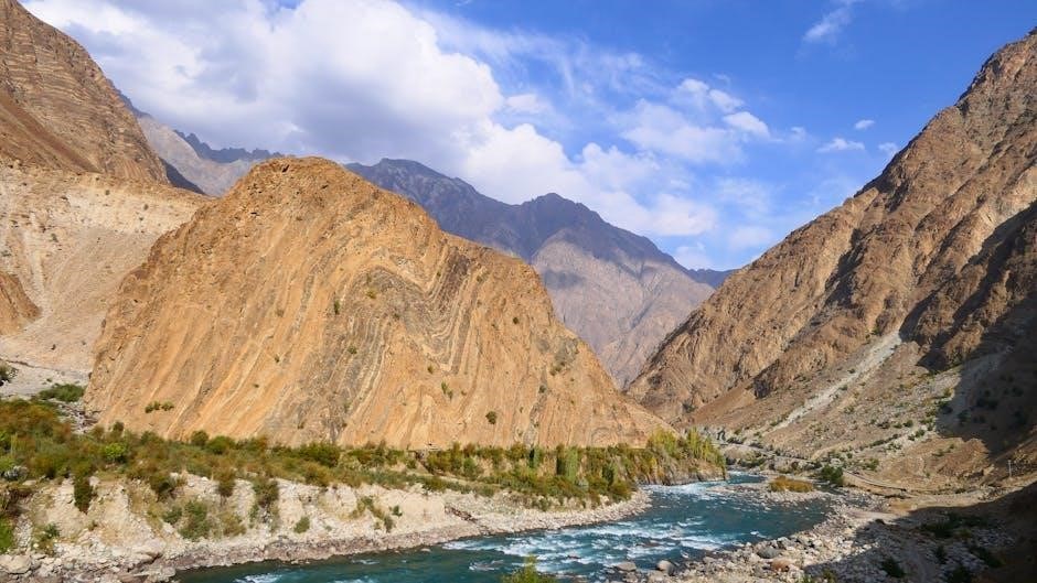 Canyons are deep, narrow valleys carved by rivers over millions of years. Their formation begins with a river cutting into rock, gradually deepening and widening the valley. Erosion, weathering, and tectonic activity shape these natural wonders. The process is slow, with rivers persistently flowing and carving through layers of rock. Over time, the canyon expands, revealing geological history in its exposed strata. Factors like rock type and climate influence their depth and shape. Iconic examples like the Grand Canyon showcase this process, offering a visual timeline of Earth’s history through their layered walls.